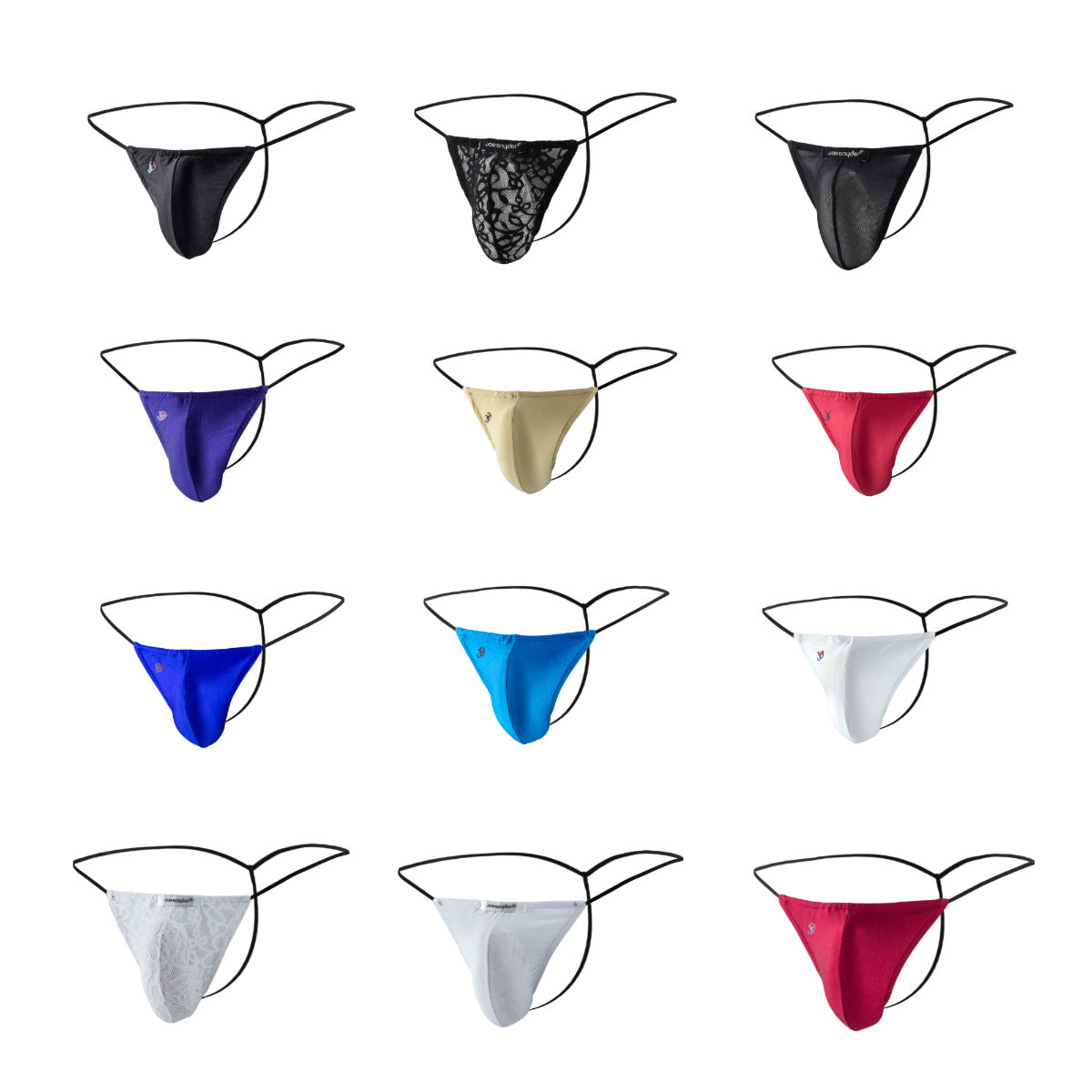 For men who prefer a little less coverage, the Joe Snyder G-String is the underwear that is perfect for you. The cupping action of the front pouch offers unique support and cradling. Men's G-strings are also incredibly comfortable to wear, look smooth under your clothing allowing you to wear tight fitting trousers or jeans without any uncomfortable or unsightly excess fabric showing. They allow air to circulate more freely helping to prevent that sweaty feeling that so often comes with wearing other types of underwear. These sexy Joe Snyder Men's G-Strings come in a fantastic range of colors and patterns so you can choose a style that suits your personality. The fabric is 80% nylon together with 20% spandex, giving you the ideal amount of stretch and supportive fit. Whether it is for everyday wear or for that special evening, you can now experience the g-string of your dreams and can stop borrowing your girlfriend's!
